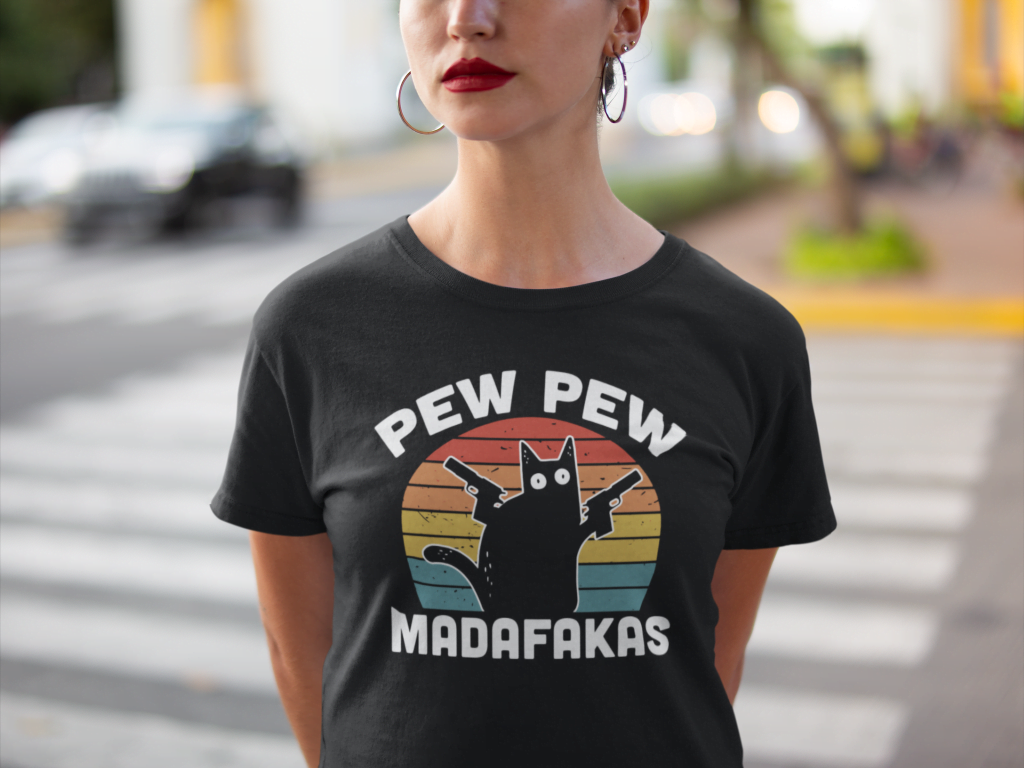 Toto vtipné tričko s nápisom ‚Pew Pew madafakas‘ je ako výkrik hráča z akčnej hry, alebo milovníka akčných športov (napríklad airsoft), ktorý sa pustil do boja. 😀 Nápis ‚Pew Pew‘ evokuje zvuky zbraní, zatiaľ čo ‚madafakas‘ pridáva dojem drzosti a sebavedomia. 😉 😀