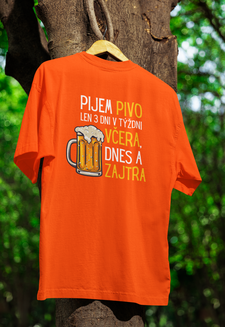 Tričko s potlačou – Pijem pivo len 3 dni v týždni včera, dnes a zajtra