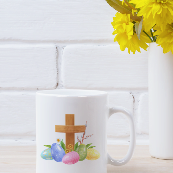 Hrnček s krížom a veľkonočnými kvietkami